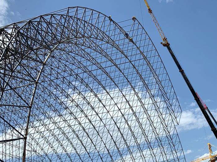 (2)网架加工前应对现场尺寸进行复测,确认无误后方可进行加工、安装;网架制作、运输、安装应遵守《空间网格结构技术规程》JGJ7-2010、《钢网架河北区螺栓球节点》JG/T 10-2009、《钢网架河北区螺栓球节点用高强度螺栓》 GB/T 16939-2016、《河北区钢结构河北区工程河北区施工规范》 GB50755-2012、《河北区钢结构河北区工程河北区施工质量验收标准》 GB50205-2020。